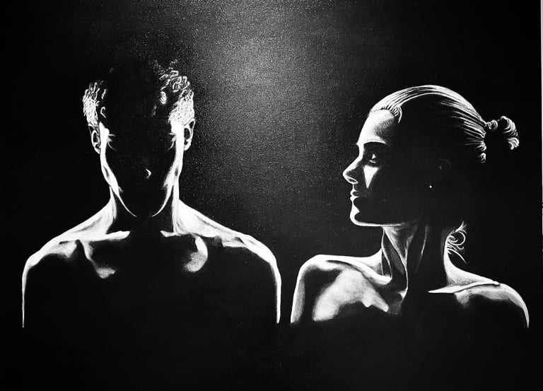 Pinturas de paisajes y retratos en diferentes técnicas.